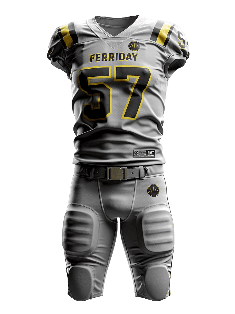 Stand out in bold confidence with the Ferriday Jersey — a sleek gray design accented by striking black and yellow shoulder stripes. Engineered for performance and pride, this uniform blends tradition with modern edge for athletes who play with purpose.